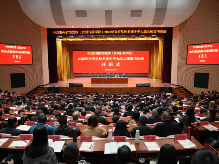 12月15日,全省党校系统冬季大练兵开班式在中共贵州省委党校举行。中共贵州省委党校(贵州行政学院)分管日常工作的副校(院)长、省委讲师团团长吴刚平出席并讲话,副校(院、团)长邓献辉主持仪式。副校(院、团)长牟明福、教育长敖以深出席。2025年全省党校系统冬季大练兵师资培训班全体学员、省委党校二级巡视员及各部门主要负责同志参加。