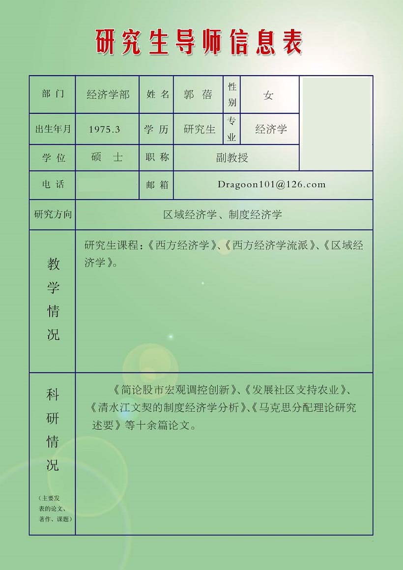 郭 蓓(经济学副教授)