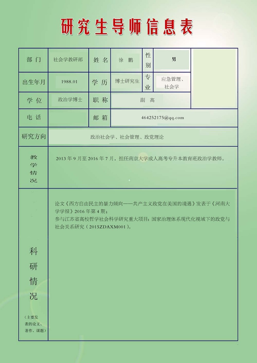 徐 鹏(副教授)