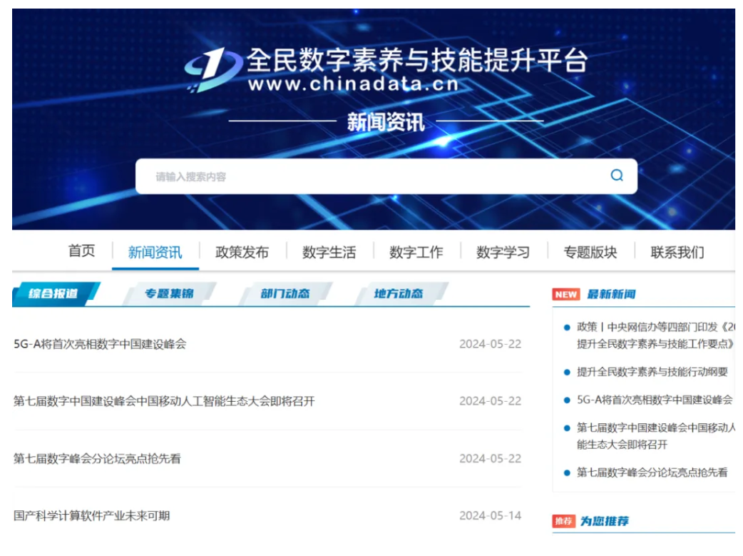 为贯彻落实《提升全民数字素养与技能行动纲要》等文件精神,中央网信办、中央党校(国家行政学院)指导建设了“全民数字素养与技能提升平台”(https://www.chinadata.cn/),平台围绕数字生活、数字学习、数字工作、数字创新等方面开发了许多高质量实用性强的免费课程资源,请大家结合实际用好此平台,助力提升全民数字素养与技能。