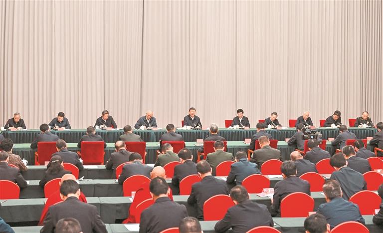 八月二十日下午,率中央代表团出席西藏自治区成立六十周年庆祝活动的中共中央总书记、国家主席、中央军委主席习近平在拉萨听取西藏自治区党委和政府工作汇报,发表了重要讲话。 新华社记者 谢环驰 摄