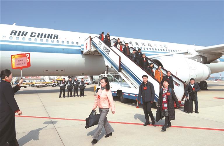 北京3月3日电(记者 刘蓝婴 敖子棋)3月3日中午,肩负全省4000多万各族人民的期盼和重托,贵州省全国人大代表、住黔全国政协委员乘飞机抵达北京,出席十四届全国人大四次会议、全国政协十四届四次会议。