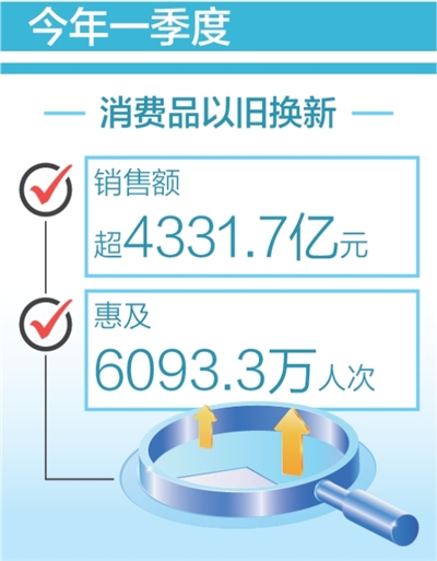 今年一季度消费品以旧换新销售额超4300亿元
