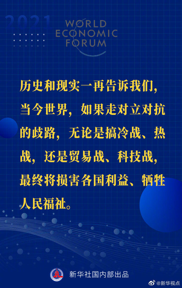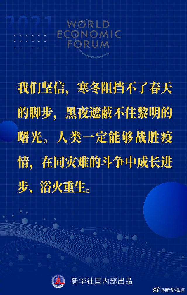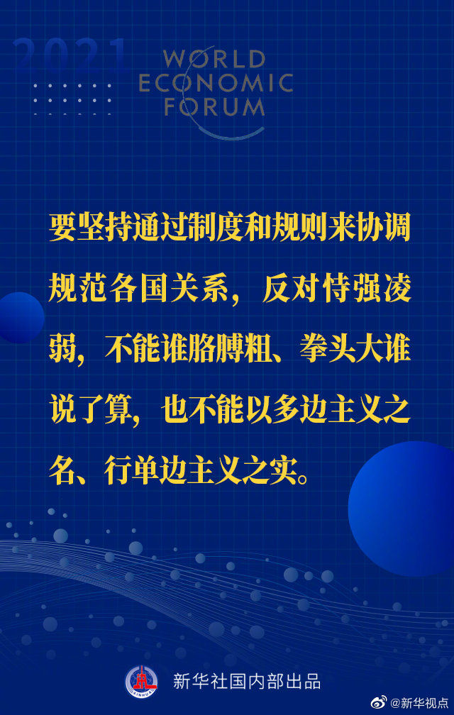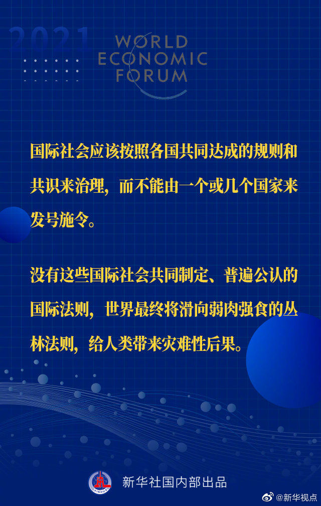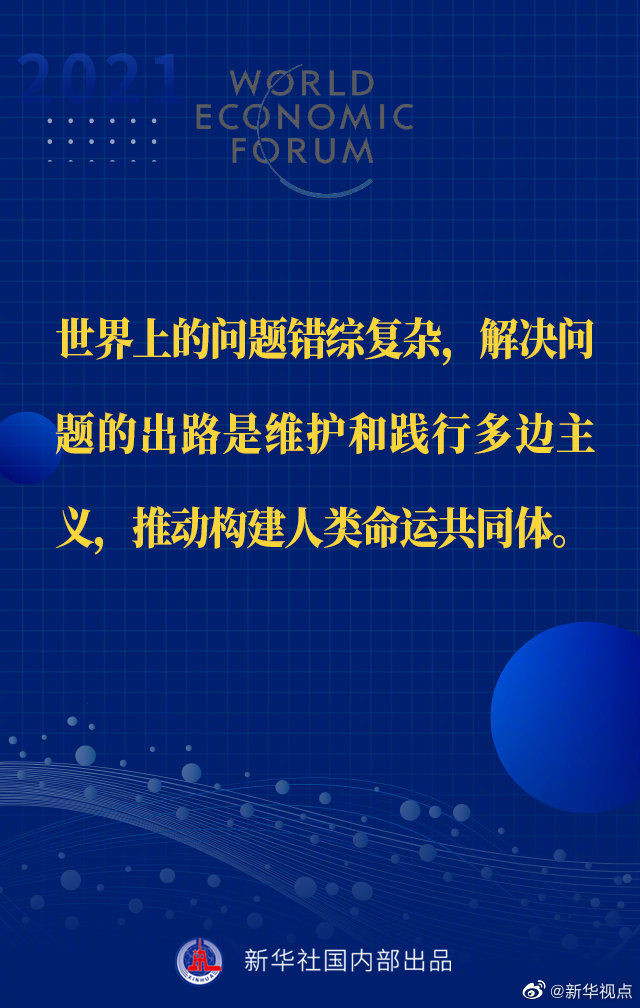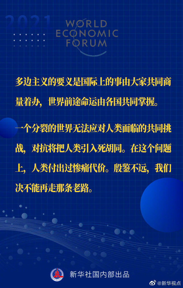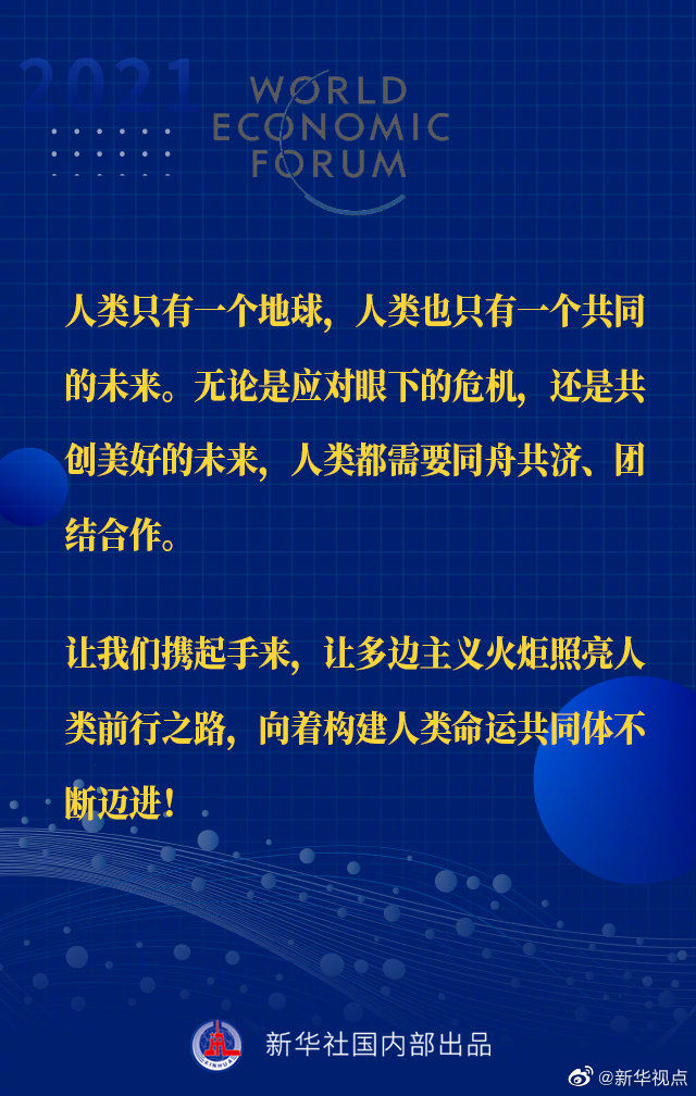 【习近平主席“达沃斯议程”特别致辞金句来啦!】1月25日晚,国家主席习近平在北京以视频方式出席世界经济论坛“达沃斯议程”对话会,并发表题为《让多边主义的火炬照亮人类前行之路》的特别致辞。一起来看金句↓↓