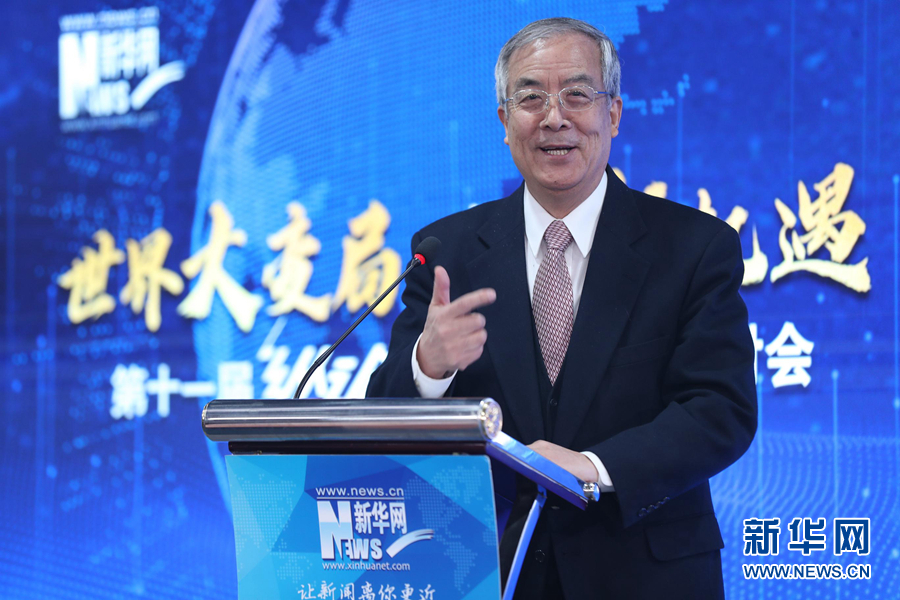 1月8日,新华网第十一届“纵论天下”国际问题研讨会在北京成功举行。图为中国太平洋经济合作全国委员会会长、太平洋经济合作理事会(PECC)双主席苏格在进行主旨演讲。新华网 郭小天 摄