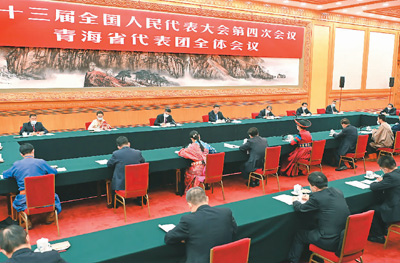 三月七日,中共中央总书记、国家主席、中央军委主席习近平参加十三届全国人大四次会议青海代表团的审议。新华社记者 李 涛摄
