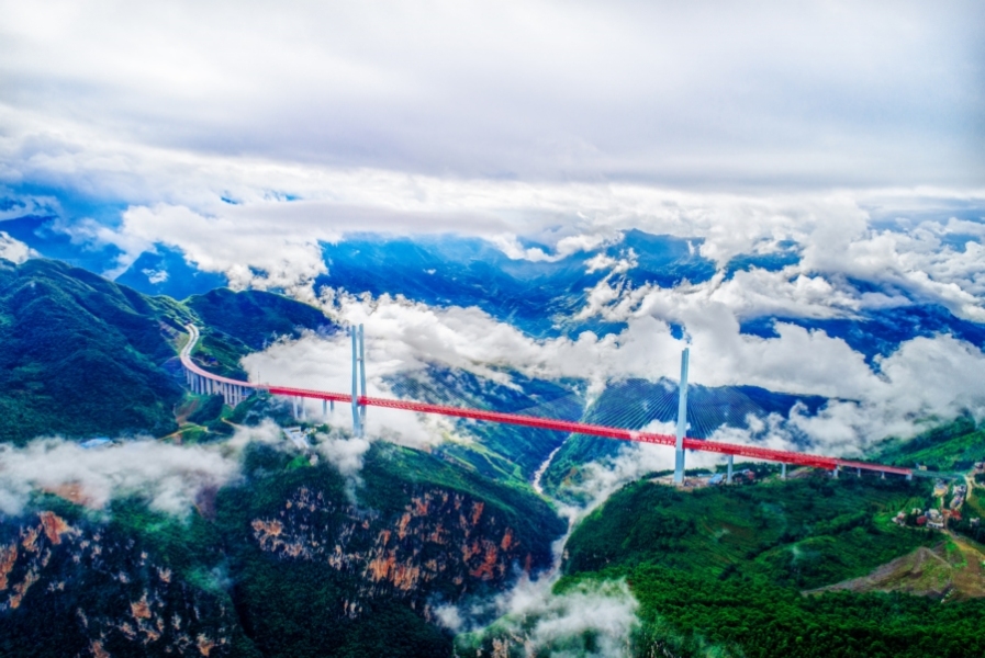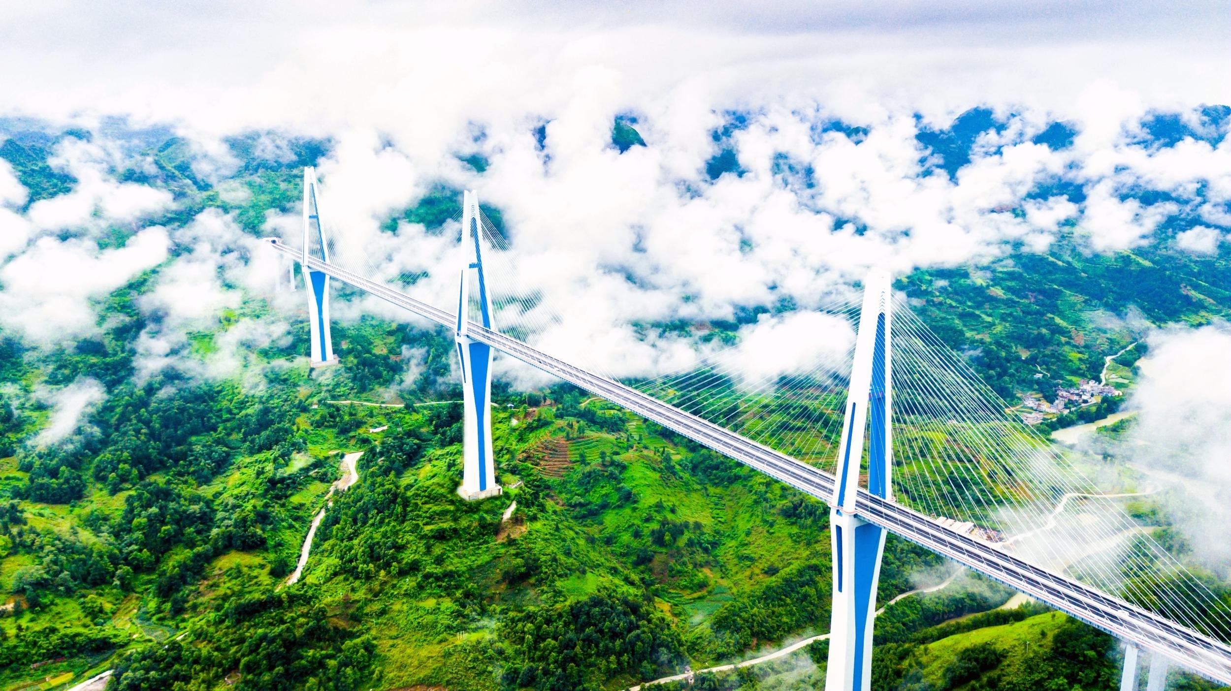 贵州独特的喀斯特地貌造就了120多万座山头,峡谷溪流纵横交错。作为全国唯一没有平原支撑的省份,贵州凭借着逢山开路、遇水架桥的现代愚公移山精神,伴随着跨越天堑、拥抱世界的梦想与渴望,在17.6万平方公里的大地上,于千沟万壑间架起3万多座桥梁。万桥飞架,不仅创造了山水间的人类奇迹,也勾勒出一个西部省份大踏步前进的奋斗印迹,映照出中国式现代化的奋进缩影。这些年来,贵州区域交通枢纽地位历史性提升,发展格局历史性重塑,综合经济实力历史性跨越。