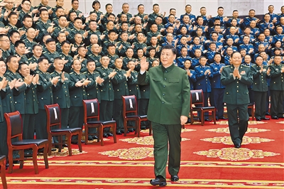 12月15日上午,习近平在南宁亲切接见驻南宁部队上校以上领导干部,代表党中央和中央军委向驻南宁部队全体官兵致以诚挚问候,并同大家合影留念。张又侠陪同接见。