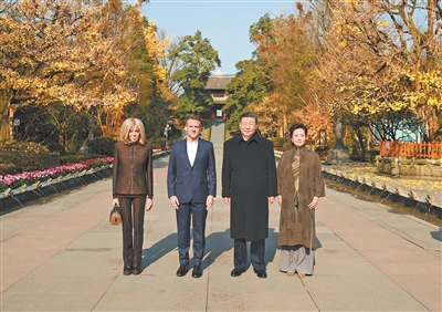 习近平夫妇邀请马克龙夫妇共进午餐,继续深入交流。