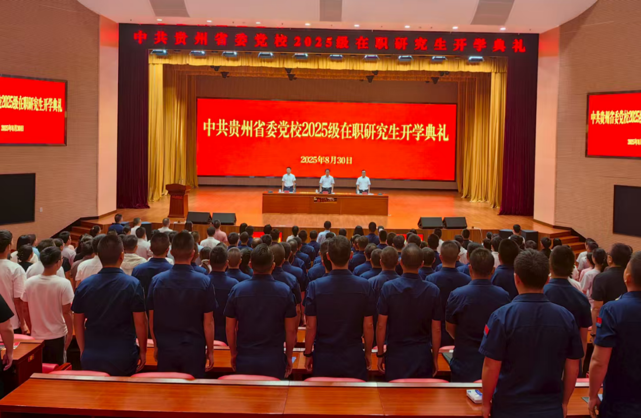 8月30日下午,中共贵州省委党校省直教学点2025级在职研究生开学典礼在校礼堂举行。校(院、团)教育长敖以深出席开学典礼并讲话。研究生部副主任徐小明主持开学典礼并开展《研究生工作手册》解读。敖以深强调,新使命呼唤新担当,同学们要始终坚持“党校姓党”原则,深刻感悟“实事求是”党校校训,切实践行“为党育才、为党献策”党校初心。作为党校研究生,要讲政治有理想,努力砥砺“赤诚忠心”;强学习勇担当,努力磨炼“探索匠心”;守纪律有规矩,努力保持“方圆恒心”。通过坚持不懈的学思践悟,不断提升运用新时代党的创新理论武装头脑、研究新情况、解决新问题的能力本领。在常学常新中加强理论修养,在知行合一中主动担当作为,锚定“在中国式现代化进程中展现贵州新风采”奋斗目标,以优良作风凝心聚力,干事创业。