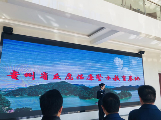 伴随警官的现场解说,学员们分批次首先参观了基地一楼主展厅,展厅墙上大电子屏幕播放展示了近年来我省查处的职务犯罪大案、要案等典型腐败案例。
