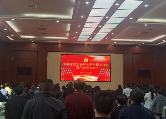 接下来,学员至二楼报告厅参加2019年省委党校主体班警示教育大会。大会上,主体班学员观看了教育基地在押刑犯现身说法录播视频,以及其他专门制作的警示教育专题片。一桩桩典型腐败案例、一段段声泪俱下的忏悔录、一张张痛苦不堪的脸庞,无不生动地震撼着参观者的心灵,给在场的每位学员以强烈的心灵震撼,激发了大家深刻的反思和自警,警示大家要坚定理想信念,坚持勤政廉洁,坚决做到不敢腐、不能腐、不想腐。