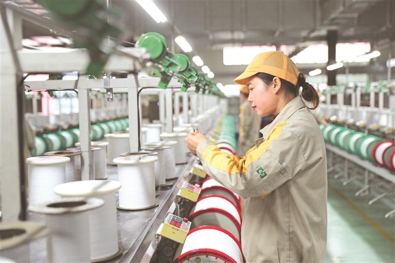 工人在贵安新区恒力纺织生产车间巡检。 袁福洪 摄 (影像贵州)