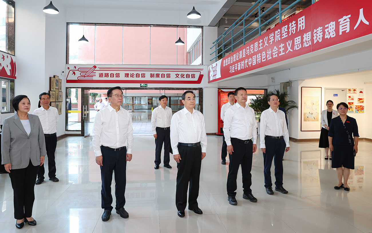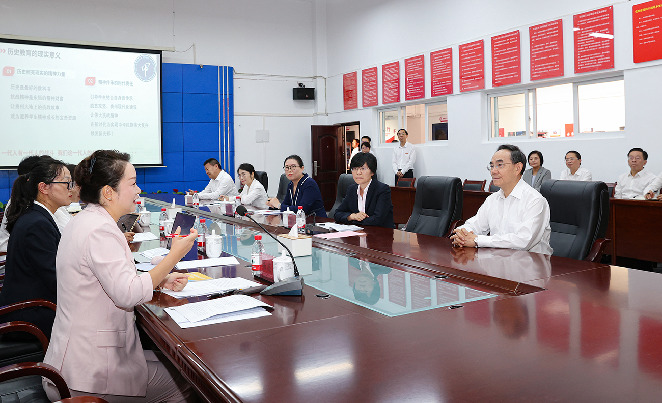 贵州师范学院是我省大中小学思政课一体化共同体建设牵头高校。徐麟来到该校马克思主义学院,认真察看各学段思政课教辅材料,与正在开展集体备课的教师进行深入交流,勉励大家因时制宜、因材施教,循序渐进推进大中小学思政课教学,打造一批具有贵州特色的思政“金课”,让学生爱听爱学、听懂学会。