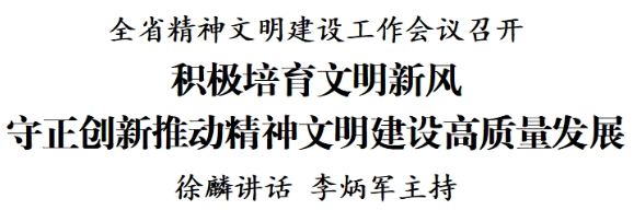 徐麟强调,要抓好学习宣传贯彻习近平新时代中国特色社会主义思想这个首要政治任务,坚持不懈用党的创新理论培根铸魂、凝聚人心。要注重以文化人、以文育人,丰富文体活动、打造文艺精品、挖掘用好特色文化资源、完善公共文化服务,持续丰富人民精神世界,筑牢向上向善向美的精神底座。要贯通协同推进文明培育、文明实践、文明创建,强化群众参与主体作用,聚焦婚嫁新风、殡葬新风、节俭新风等重点深化移风易俗,丰富内容、创新形式推动文明实践有形有效覆盖扩面提质,提升文明城市、文明村镇、文明单位、文明家庭和文明校园创建质效,绵绵用力养成文明习惯、形成文明风尚。要把加强党的领导贯穿精神文明建设各方面全过程,突出党员干部带头,发挥先进典型示范作用,广泛深入动员群众,营造全社会人人参与、人人践行的浓厚氛围。