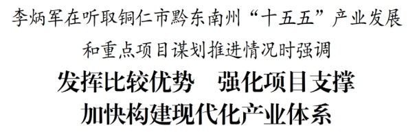 铜仁市、黔东南州分别作了汇报,与会同志进行了深入讨论。李炳军对铜仁市、黔东南州“十四五”发展成绩和“十五五”产业发展总体思路表示肯定。他强调,“十五五”各地要坚持把产业发展作为头等大事,立足比较优势和产业基础,强化市场意识、质量效益意识,集中力量大抓产业、大抓项目、大抓招商、大抓经营主体,不断增强现代化产业体系竞争力。铜仁市要扎实做好产业发展大文章,依托梵净山世界自然遗产加快文体旅、康养等融合发展,推动新材料产业延链强链、集聚生态,支持抹茶等生态食品产业扩大规模、做强品牌,撬动更多社会资本推进城市更新,不断增强发展内生动力。黔东南州要做大做强矿产资源精深加工、民族医药、酸汤等特色产业,持续提升村超、村BA等“村字号”品牌,探索推进“黎从榕”旅游业一体发展、提质发展,推动对接融入粤港澳大湾区“桥头堡”建设取得更大成效。省有关部门要积极支持、靠前服务,帮助地方补齐交通、水利、生态环保等领域短板,为产业发展和项目建设提供有力支撑。各市(州)要扛牢主体责任,系统谋划“十五五”产业发展思路举措,主动与省直部门对接,形成上下协同的强大合力。要统筹抓好明年一季度“开门红”和安全生产、生态环保、防范化解重大风险等工作,确保“十五五”开好局、起好步。