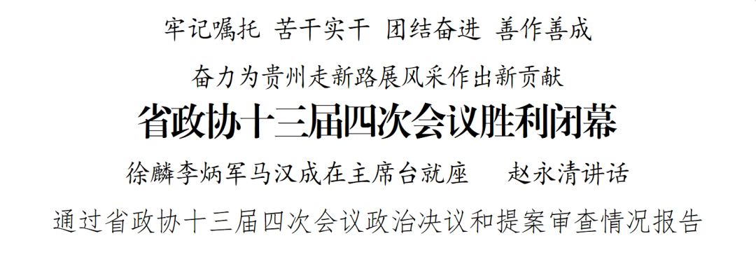 1月30日上午,中国人民政治协商会议第十三届贵州省委员会第四次会议在贵阳胜利闭幕。