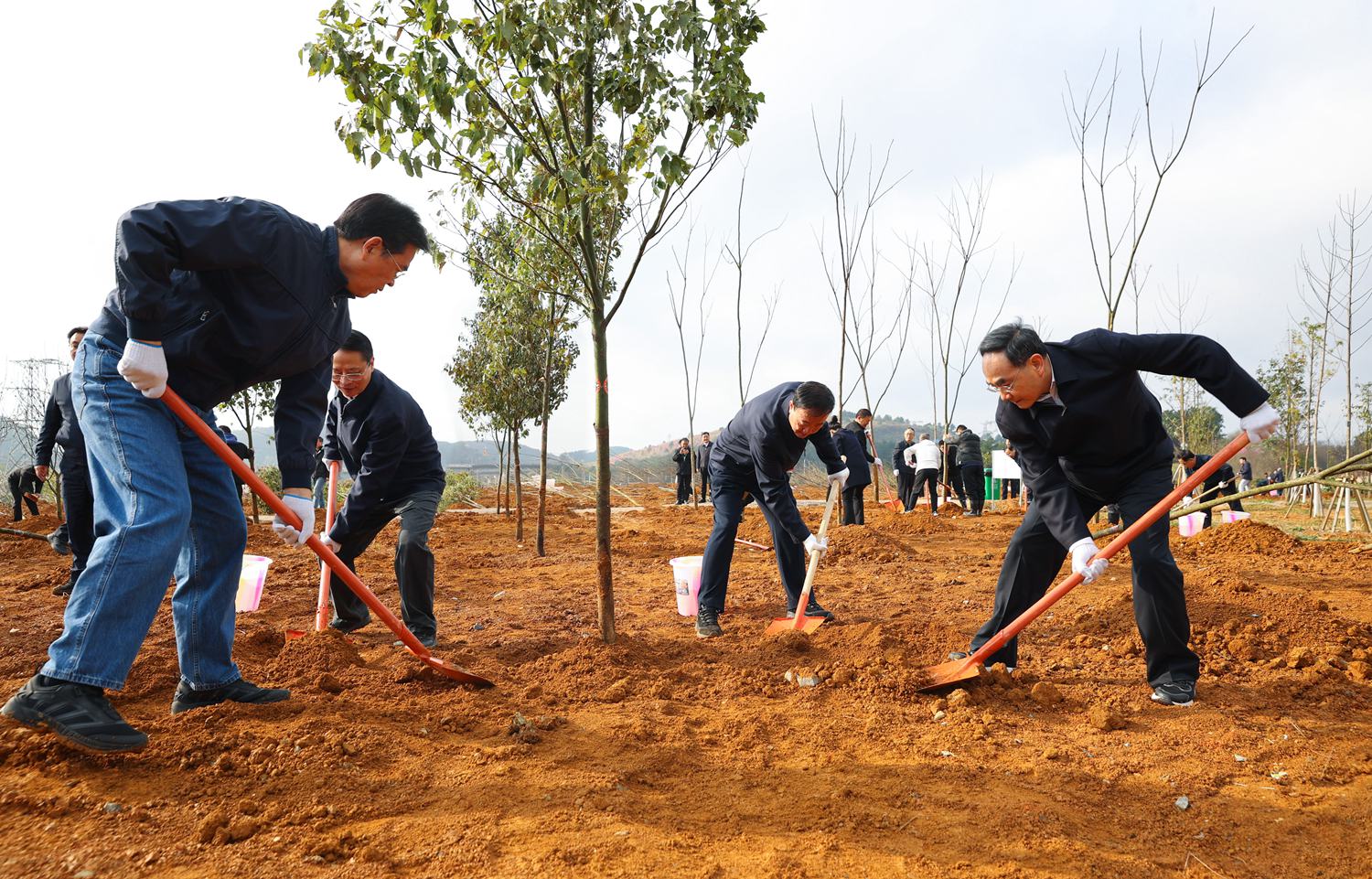 2月28日,2026年全省义务植树活动在省市县乡村五级举行。省委书记徐麟,省委副书记、省长李炳军,省政协主席赵永清,省委副书记马汉成等来到贵阳市双龙航空港经济区小碧乡秦棋村,与干部群众一道参加义务植树,为美丽贵州再添新绿。