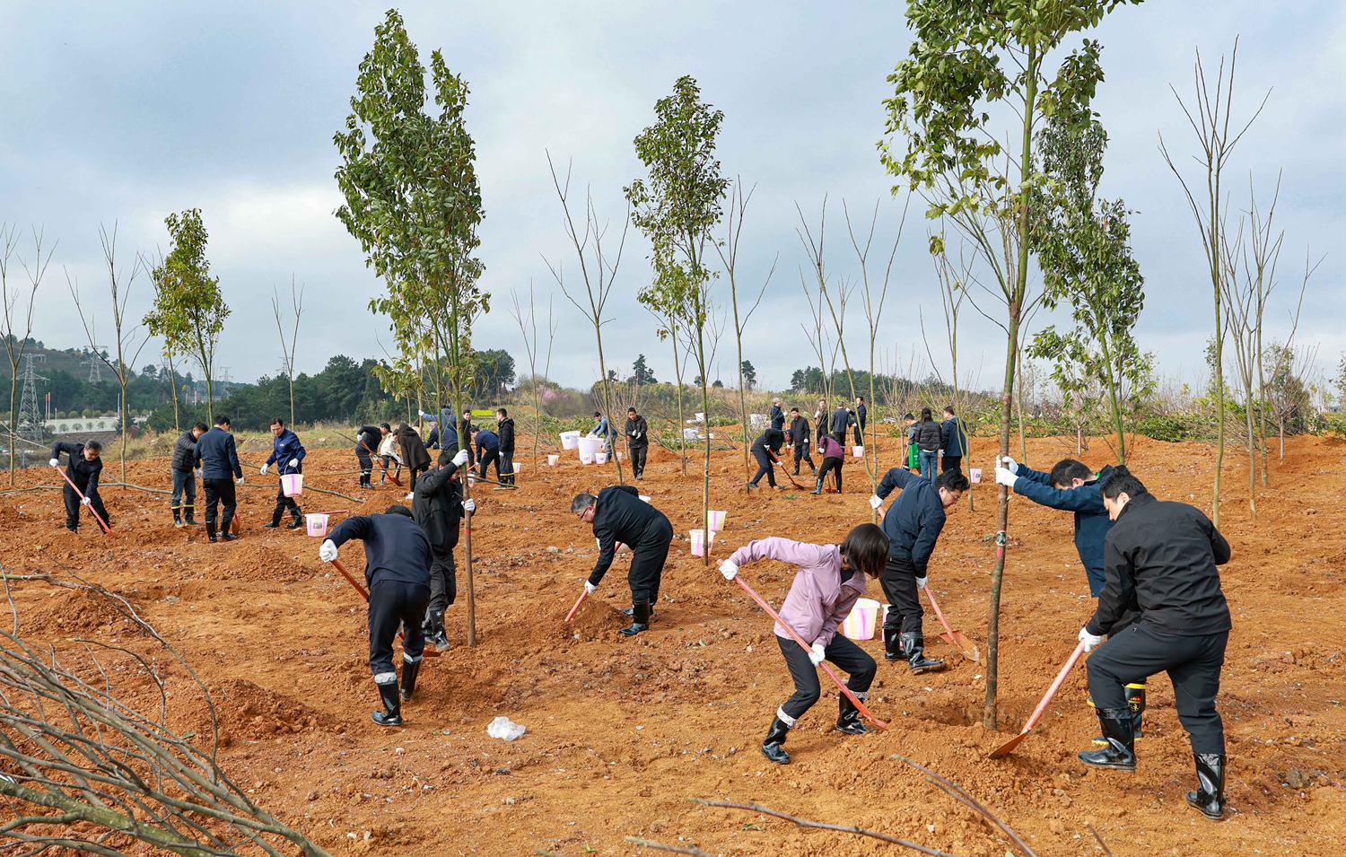 图为贵阳市双龙航空港经济区小碧乡秦棋村义务植树活动现场。