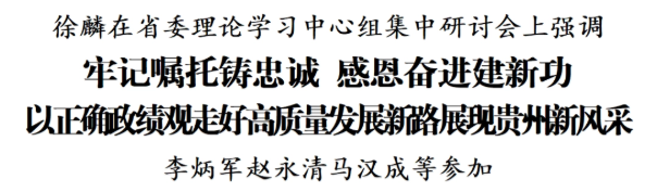 3月18日,省委召开理论学习中心组集中研讨会,重温习近平总书记去年考察贵州重要讲话精神,深刻感悟总书记对贵州各族人民的深情厚爱,牢记嘱托铸忠诚、感恩奋进建新功,以正确政绩观走好高质量发展新路、展现贵州新风采。