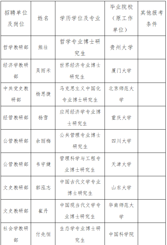 根据《中共贵州省委党校2025年高层次人才引进公告》,经发布公告、报名、资格审查、考核等程序并体检、考察合格,现将拟聘用人员名单予以公示。公示期间,如有问题,请向我单位反映。