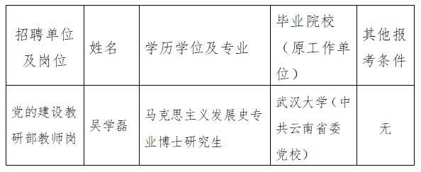 根据《中共贵州省委党校2025年高层次人才引进公告》,经发布公告、报名、资格审查、考核等程序并体检、考察合格,现将拟聘用人员名单予以公示。公示期间,如有问题,请向我单位反映。