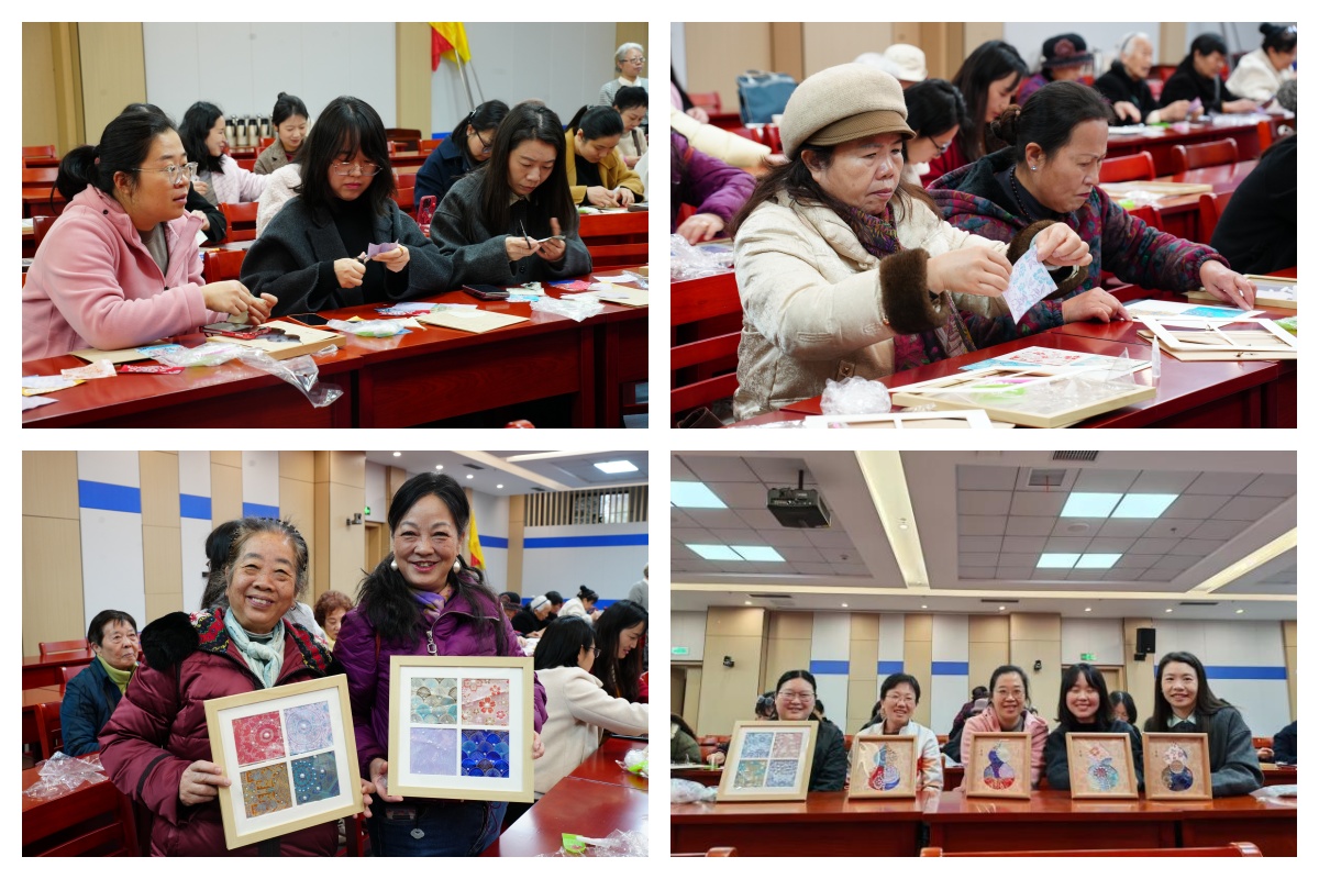 随后开展“宋锦珍珠画”手工制作活动。大家精心构图设计,将珍珠与配饰巧妙镶嵌于宋锦画框中,创作出一幅幅别致雅致的作品。在艺术体验中,大家感受传统手工艺魅力,舒缓工作压力,增进彼此情谊。