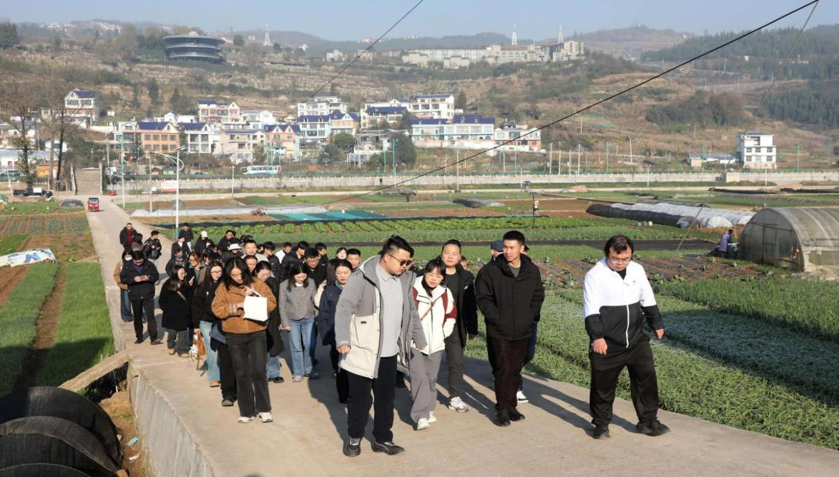 在大桥村蔬菜基地,同学们详细了解基地蔬菜种植的规模、品类、技术运用、产销方式以及产业基础设施建设等情况,对基地的运营模式、市场销路、带动农户增收等情况与村负责人开展深入交流,深刻体会发展特色农业、推动产业兴旺在乡村振兴中的基础性作用。